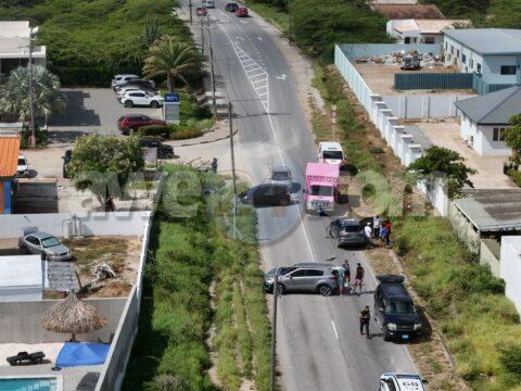 [VIDEO] Accidente tras di otro accidente pariba di crusada di Pos Abao cu 4 auto envolvi cu 2 hende levemente herida