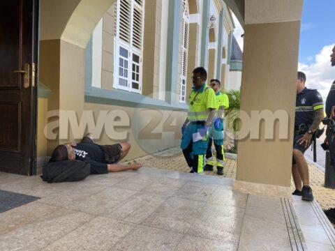 Polis y ambulans a bay pa un homber benta abao cu dolor di pecho banda di Pro Catedral San Francisco