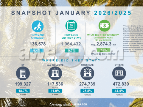 Durante 2025, Aruba a registra 1,028,071 Visa cardholders di 152 pais, cu a genera un total di USD 696 miyon den gasto. Esaki tamustra un…