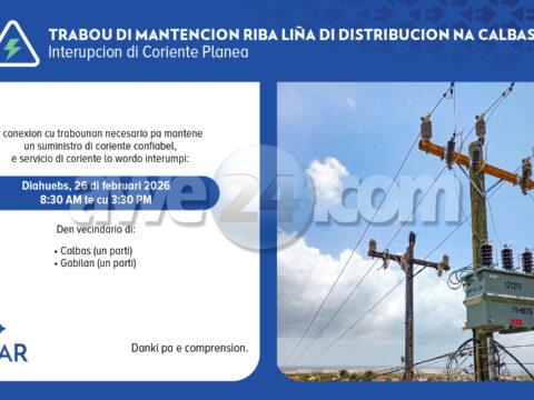 Pa sigui garantisa suministro di electricidad; ELMAR lo ehecuta trabou di mantencion den e area di Calbas. Durante e trabou, ta necesario pa desconecta temporalmente…