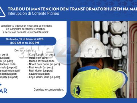 ELMAR: Trabou di mantencion den e Transformatorhuizen na Mabon y vecindario riba diahuebs 12 di februari 2026