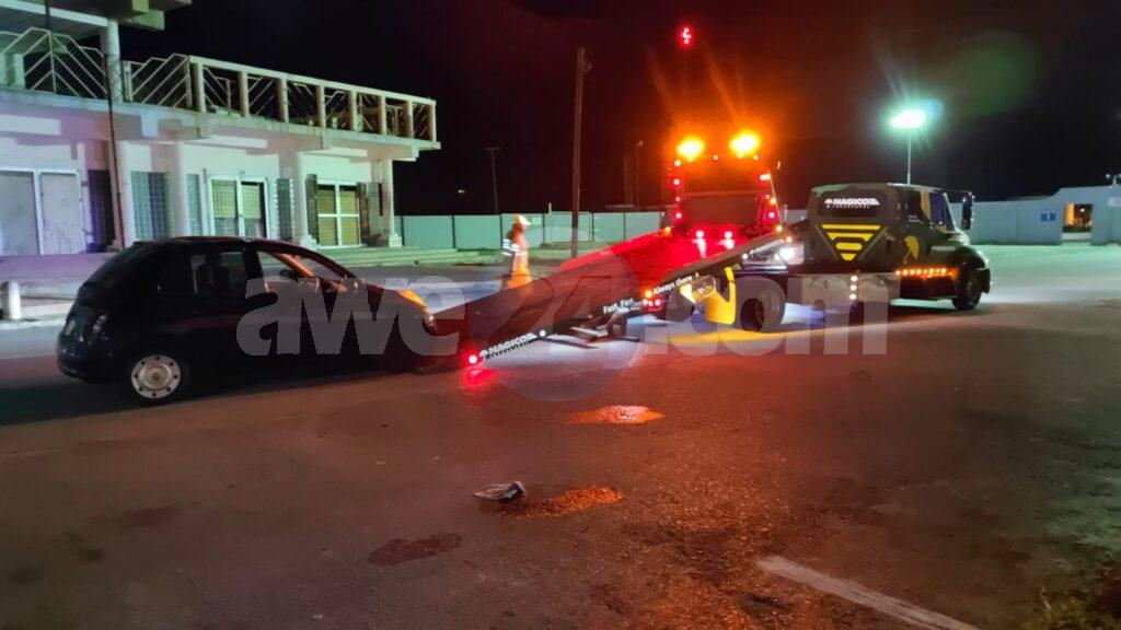 Diahuebs madruga durante patruya polisnan atento a nota un auto cu su bentana habri pero no a mira ningun hende den cercania, ora controla e number esaki no tabata cuadra y ora a wak e papelnan den e auto esakinan no tabata na ordo. Polis a dicidi pa confisca e auto, na yegada di e takelwagen e doño a aparece y a roga pa no kita e auto for di dje y a bisa cu ta gasolin a caba cun’e. Ela pidi pa dun’e un chance pa regla su papelnan. Polis a bis’e regla su papelnan y djey por bin busca su auto.