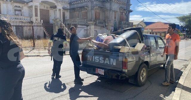 Diabierna mainta riba instruccion di City Inspector a piki tur e pertenencianan (rommel) cu e adicto Mexzy Lont ta laga riba caya, esaki a pone cu Mexzy a rabia y a pega su pertenencianan na candela causando daño na e pick-up. Mexzy mes despues di a pega esaki na candela a bay for di e sitio.