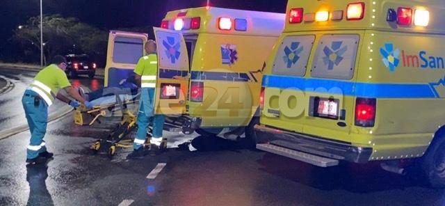 Diaranzon madruga a drenta informe di un accidente cu hende herida na e rotonde Sasaki, mesora a dirigi tantonpolis como ambulans na e sitio. Na yegada di e patruya a bin compronde cu aki ta trata di un accidente unda cu un chauffeur di Vwagen biniendo di nort cu velocidad halto riba caminda muha no a logra para na tempo y a slip bay accidenta riba un auto pasando riba e rotonde. Debi na e impacto tanto e chauffeur como tambe e pasahero den e auto pasando riba e rotonde a resulta herida. Na yegada di e 2 ambulansnan nan a atende ambos victima y a transporta nan pa hospital.