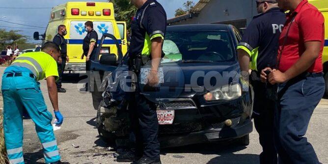 Diamars mainta a drenta informe di un accidente cu hende herida na Rooi Afo. Mesora a dirigi tanto polis como ambulans na e sitio. Na yegada di e patruya a bin compronde cu un motociclista lo tabata hop y ora a wak auto contrario a baha y a bay dal semi-frontal. Na yegada di e ambulans nan a atende e victima y a transporte pa hospital.