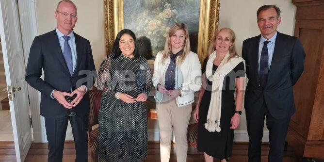 Na e recepcion ofreci pa e Embahador Hulandes, sr. Haspels, Minister Maduro a cera conoci cu e Minister nobo di Hulanda encarga cu Comercio Internacional y Desaroyo di Cooperacion sra. Liesje Schreinemacher y tambe cu Minister di Finansa di Sint Maarten, sr. Ardwell Irion. Tabata un momento ameno pa e mandatarionan hoben den Reino cera conoci cu otro y combersa un rato riba e reto pa ta un mandatario hoben gobernando den e ‘era di media social.’ Un tarea cu no ta facil y cu ta exigi disciplina y curashi pa carga responsabilidad grandi na bienestar di cada Pais den Reino.