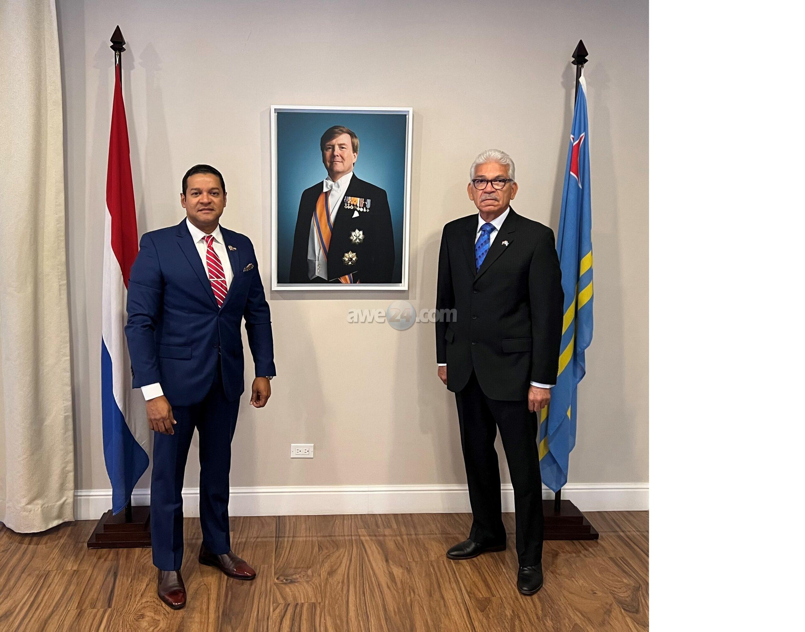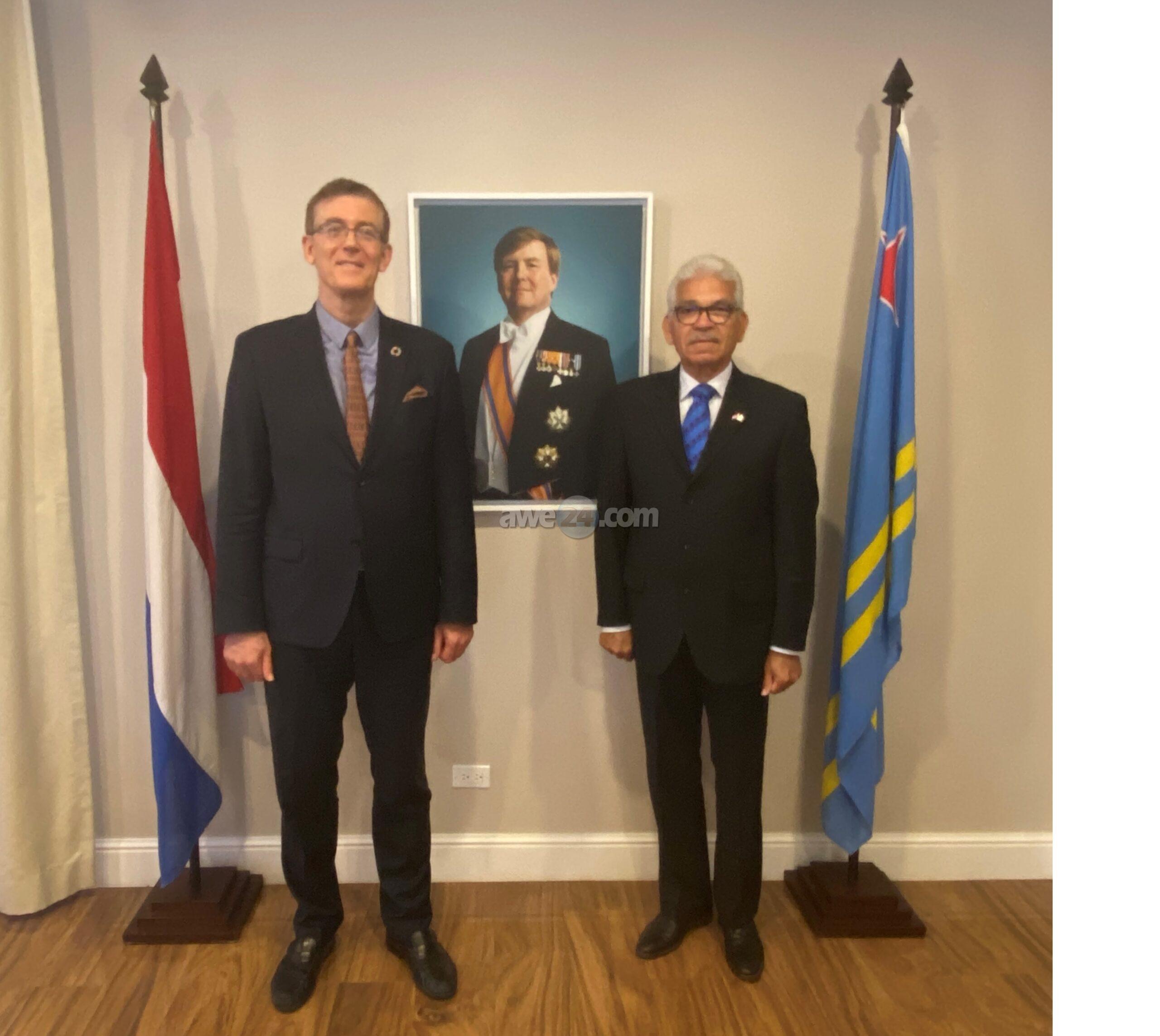 met de waarnemend Gouverneur van Aruba. Onderwerpen van gesprek betroffen onder andere de