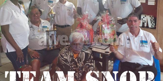 Wel, shonnan amante di “cutting edge” domino, ta manera cu e showdown dje anochi ey, e bataya entre Team SNOR y RANGERS DT, a start, un y tur den Team Snor por a observa y deduci cu e aura di Snor por ta a cambia, pero su style di hunga domino no. For di tempran palo a cuminsa coy Snor su curpa! Wega tras di wega ta bay perdi, y mes ora capitan di team, Ms. Margo, a duna instruccion cla y raspa pa un y tur den team Snor “step up to the plate” si no e storia dje anochi ey lo bay caba atrobe manera ultimo biahanan … bou dje palo di kwihi! RangersDT no a bin pa haci wega! Den prome buelta, mientras Snor ta hayando sota tras di sota, e otro integrantenan a hiba un bataya formal y cu score di 11-7, Team Snor ta drenta halftime c’un bentaha.