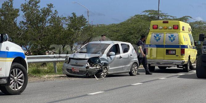 Diahuebs mainta a drenta informe di un accidente cu hende herida banda di Azure na Palm Beach, mesora a dirigi tanto polis como ambulans na e sitio. Na yegada di e patruya ya caba ambulans tabata na e sitio. Locual a a sosode ta cu e dama chauffeur a bira malo tras di stuur ela bay na banda robes di caminda bay dal riba e vangrailsnan. E ambulans a atende e dama y a transporte pa hospital. Polis a confisca e auto Zotye ya cu esaki no tabata tin su papelnan na ordo.