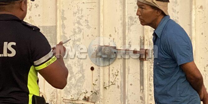 Diamars mainta tempran a drenta informe di cu tin un persona sospechoso riba e containernan pabao di e rotonde nobo na Oranjestad, mesora a dirigi un patruya na e sitio. Na yegada di e patruya a bin encontra cu un adicto ambulante riba e container. Polis a ordene pa e baha y a bay controla riba e containernan pero noba topa cu nada particular. Polis a core cun’e for di e sitio.