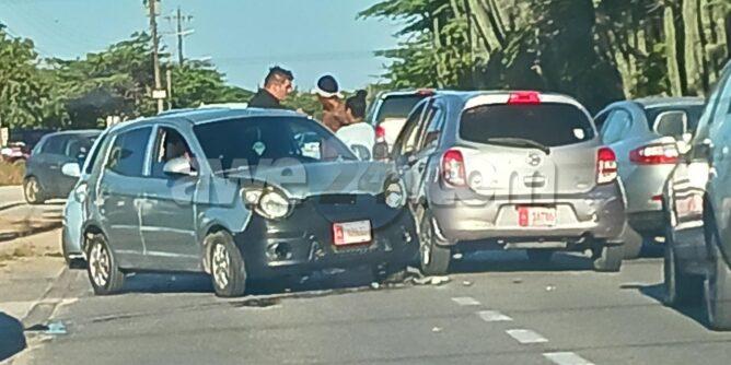 Diamars atardi a drenta informe di un accidente cu hende herida na e crusada dilanti Veterinario Noord, mesora a dirigi tanto polis como ambulans pa e sitio. Na yegada di patruya na e sitio a bin constata cu aki chauffeur di un Nissan March lo a sali dilanti un KIA Picanto bayendo pabao riba caminda di preferencia. Esaki a causa un accidente unda un persona lo a keda levemente herida. Ambulans a yega na e sitio y a atende cu e herido.