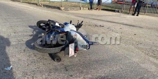 Diahuebs atardi a drenta informe di un accidente cu hende herida na Sabana Blanco, mesora a dirigi tanto polis como ambulans na e sitio. Na yegada di e patruya a bin compronde cu aki ta trata di un accidente entre un Suzuki Swift maneha pa un hobencita cu a bay purba pasa net prome cu e motocicleta y nan a dal den otro unda e motociclista a resulta levemente herida na su man y rudia. Na yegada di e ambulans nan a atende e motociclista na e sitio mes.
