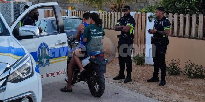 Diasabra atardi despues cu polis a atende un caso na Purun a topa dos hoben coriendo riba caminda riba un brommer sin helm bisti. Polis a para nan y hala nan atencion ya cu e brommer lo no tabata tin number y nan tabata sin helm. E hoben a splica polis cu nan tabata djis “test driving” e brommer. Polis a laga nan bai pero a pone nan bai na pia pa cas.