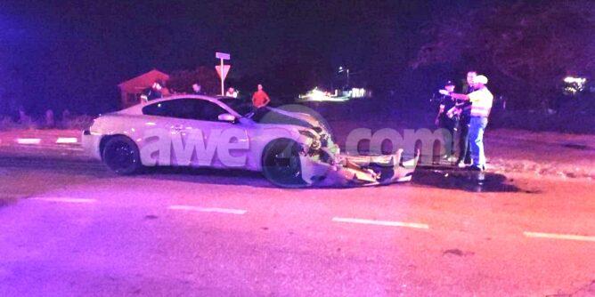 Diasabra anochi a drenta informe di un accidente cu hende herida na Hooiberg, mesora a dirigi tanto polis como ambulans na e sitio. Na yegada di e patruya a bin compronde cu aki ta trata di un accidente frontal unda e chauffeur di un auto deportivo a a bay na banda robes di caminda y a bay dal frontal riba un s.u.v. Debi na e fuerte impacto e dama chauffeur den e s.u.v. a ricibi un bolonbonchi pero no tabata desea atencion di ambulans mientras e chauffeur di e auto deportivo si a resulta mas herida y a ser atendi pa e personal di ambulans y hiba hospital.