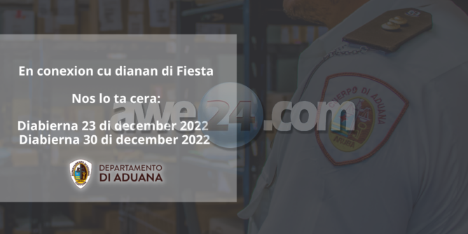 Diabierna 23 di december 2022 e oficinanan di Aduana lo ta cera en conexion cu