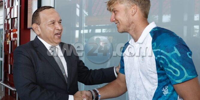 ORANJESTAD: Diahuebs atardi mandatario di Deporte a ricibi atleta Malik Hoveling na su yega na Aruba. Malik a gana medaya di oro den Weganan Centro Americano y Del Caribe di Mar y Playa na Santa Marta, Colombia den e disciplina di sailing.