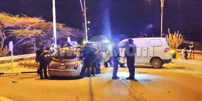 Diasabra madruga a drenta informe di un accidente cu hende herida y pega den auto na e crusada di Mondi Fierno, mesora a dirigi tanto polis, ambulans como tambe e equipo di rescate di bombero na e sitio. Na yegada di e patruya a bin compronde cu aki ta trata di un accidente frontal entre un Suzuki APV y un Nissan March unda den ambos auto tabata tin hendenan herida. Na yegada di e ambulansnan nan a atende e victimanan mientras bomberonan tabata liberando e dama cu a keda pega den e Nissan March y a yuda ambulans cu e victimanan. Ambulans a transporta e victimanan pa hospital.