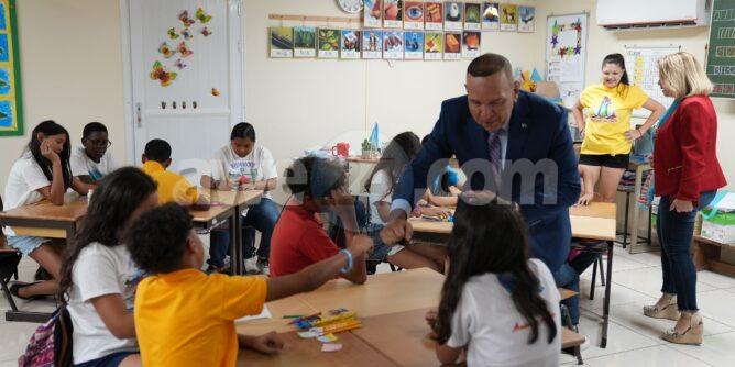 ORANJESTAD: En conexion cu celebracion di Dia di Himnoy Bandera, Minister Endy Croes a bishita diferente scol naAruba. Diaranson ultimo, mandatario di Enseñansa y Deportehunto cu Prome Minister Evelyn Wever – Croes a bishita St. Aloysius School pa aprecia e bunita exposicion cu e studiantenan a traha relaciona cu nos pais.