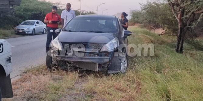 Diabierna atardi a drenta informe di un accidente riba Sasakiweg, mesora a dirigi un patruya na e sitio. Na yegada di e patruya a bin conpronde cu aki ta trata di un accidente unda un chauffeur mester a desvia pa un otro auto no dal riba dje y ela perde control baha caminda cay den e median. Afortunadamente ningun hende a resulta herida.