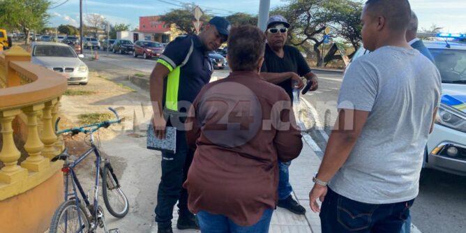 Diaranson atardi a drenta informe di un accidente cu hende herida na rotonde Tanki Flip, mesora a dirigi tanto polis como ambulans na e sitio. Na yegada di e patruya a bin compronde cu aki ta trata di un accidente unda cu e dama chauffeur di un Nissan a sali dal un ciclista y ela resulta levemente herida pero no tabata desea atencion di ambulans. E wiel di e bicicleta si a keda dobla.