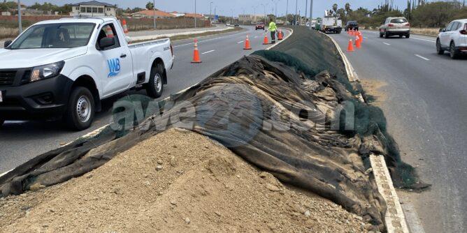 Diabierna mainta a drenta informe di un accidente riba E.J.”Watty” Vos blvd. entre Tanki Leendert pa Ponton, mesora a dirigi un patruya na e sitio. Na yegada di e patruya a bin compronde cu aki ta trata di un accidente unda e tire di un truck grandi di Elmar a rementa y e truck a subi e median ranca 2 palo di lus fuera ranca e tapijt di yerba artificial. Afortunadamente ningun hende a resulta herida y Elmar a keda di cubri e gastonan envolvi.