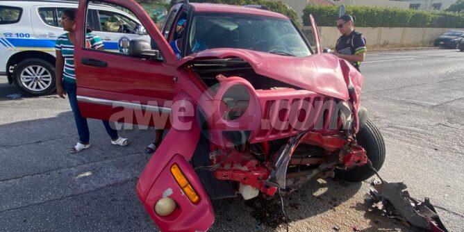 Diaranson atardi un patruya pasando den Plantersrust a bin topa cu un accidente cu basta daño na e crusada Plantersrust/Wayaca. Mirando e impacto a haya cu lo ta prudente pa ambulans presenta na e sitio. Ta trata aki di un accidente pa falta di preferencia unda e Jeep biniendo for di Plantersrust no a para pa duna preferencia na e Kia Sportage cu tabata biniendo for di zuid di Wayaca bayendo nort. E Jeep a dal e Sportage mande subi acera y bay dal un borchi di trafico. Na yegada di e ambulans nan a atende e heridonan na e sitio mes.