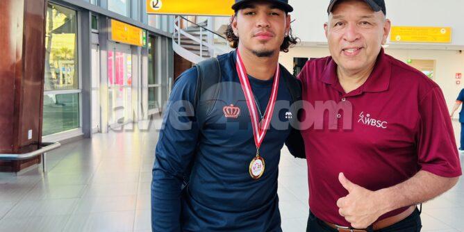 ORANJESTAD: Diadomingo atardi, memey di famia y conoci Minister Endy Croes a ricibi e atleta Brandon Rincones cu a yega Aruba di Austria, despues di a logra e titulo di campeon cu Team Kingdom U23. Den un partidoemocionante seleccion di Hulanda a derota ekipo di Inglateracu e score di 23–5 y asina titula campeon di European Baseball Championship 2023. E campeonato Europeo di baseball a tuma luga a aña aki na Austria. Famia di Brandon y amistadnan tabata super contento y a yega aiport pa topa cu ne. Sigur e pelotero Brandon Rincones tabatin un tremendocampeonato unda cu el a luci y briya den “shortstop”. Mester añadi cu tres (3) Arubiano a forma parti di seleccion di Hulanda U23, esta Jeandro Tromp, Brandon Rincones y Edvin Irausquin. Esaki ta di dos (2) aña consecutivo cu seleccion di Hulanda ta titula campeon di e toreno. Minister Endy Croes ta felicita Brandon Rincones pa su excelente prestacion na e torneo aki. Alabes mandatario di Deporte ta felicita famia– y coachnan cu e triunfo aki. Cu deseo, disciplina, determinaciony dedicacion ta logra. Aruba ta orguyoso di bo Brandon!