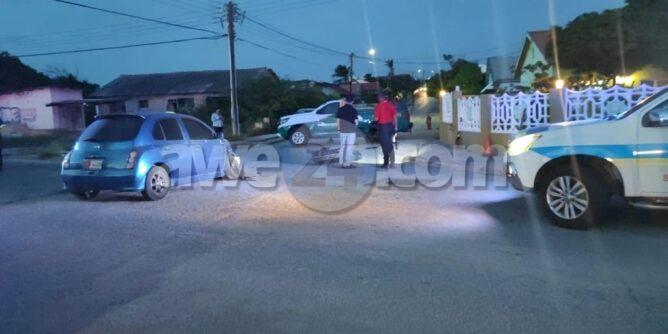 Diamars atardi laat a drenta informe di un accidente cu hende herida na crusada Weg Kustbatterij cu Grote Bergweg, meaora a dirigi tanto polis como ambulans na e sitio. Na yegada di e patruya a bin compronde cu aki ta trata di un accidente unda cu un Nissan March biniendo for di Weg Kustbatterij no a duna preferencia na un pick-up di trafico di man drechi biniendo for di Grote Bergweg. E impacto tabata basta fuerte te cu ambos auto a bira 90 grado y ambos chauffeur a resulta herida. 2 Ambulans a presenta pa atende ambos victima y a transporta nan pa hospital. Polis a pidi pa e departamento tecnico y forensyco presenta pa documenta e accidente aki.