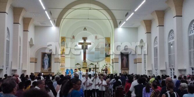 Diasabra anochi despues di cu debi na e condicion di e tempo a move e sitio pa e celebracion di e Birgen di e Santo Rosario pa Pro-Catedral San Francisco di Asis na Oranjestad. Esaki a conta un multitud di feligresnan y devotonan fiel cu a asisti na e bunita ceremonia di Celebracion.