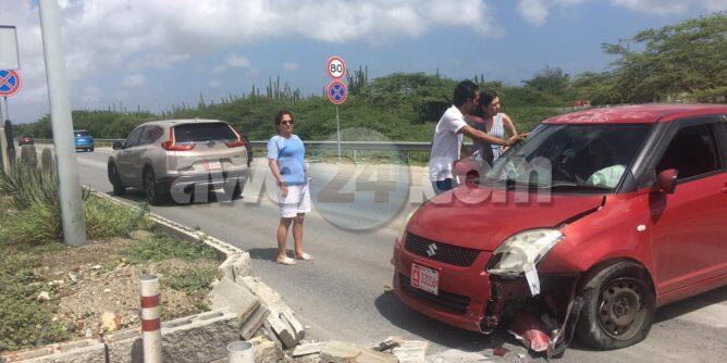 Diadomingo mainta a drenta informe di un accidente pabao di rotonde Pos Chikito cu hende herida, mesora a dirigi tanto polis como ambulans na e sitio. Na yegada di e patruya a bin compronde cu aki ta trata di un accidente unda e dama chauffeur bayendo pabao a perde control saliendo for di e rotonde y a perde control y a bay dal e blokinan memey di e via di camindanan. E impacto tabata fuerte te pa e dama keha di dolor na su boca, cabes y nek. Na yegada di e ambulans nan a atende e dama y a transporte pa hospital.