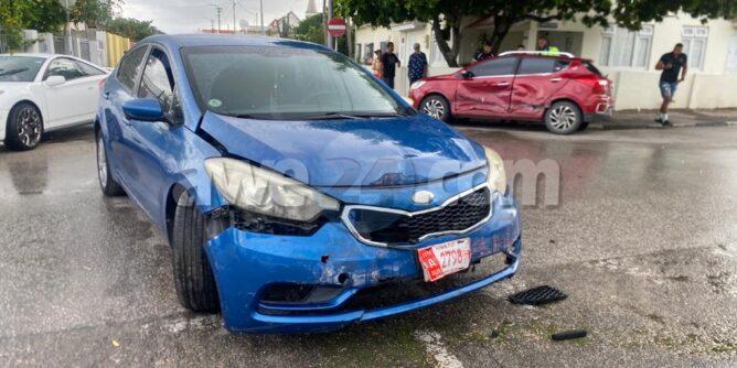Diadomingo mainta a drenta informe di un accidente na e crusada Socotorolaan cu Emmastraat, mesora a dirigi tanto polis como ambulans na e sitio. Na yegada di e patruya a bin compronde cu aki ta trata di un accidente unda cu un Kia Cerato bayendo pabao den Socotorolaan no a para pa duna preferencia na un Jac s.u.v. bayendo zuid den Emmastraat e impacto tabata asina fuerte cu e Jac a bira 180 grado y cu e wiel di patras a dal na e acera. Debi na e fuerte impacto net na banda di chauffeur e dama a resulta herida. Na yegada di e ambulans nan a atende e victima y a transporte pa hospital.