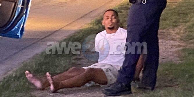 Diadomingo mainta despues cu tur e clubnan nocturno a sera polis a tene un vehiculo na bista y a para esaki riba Sasakiweg. Polis a bay atende cu e chauffeur ya cu e tabata core cu un taira flat, ora bay atende a nota cu e ta bao influencia y a detene. Ora a tira un bista bon den e auto a bin descubri droga y a confisca esaki.