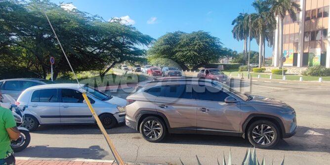 Diabierna mainta un oficial di e brigada motorisa a bin topa cu un accidente na e rotonde banda di Banco di Caribe. A bin resulta cu un chauffeur sin ningun papel na ordo no a regula su velocidad ni a mantene distancia a bay dal tras di un otro su dilanti. Afortunadamente ningun hende a resulta herida.