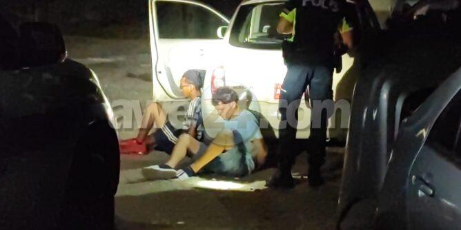 Diahuebs madruga polis atento a haya holor di marijuana for di un Nissan March. Mesora nan a sigui tras di e auto y a logra para nan. Polis a detene dos hoben masculino y a encontra marijuana den e auto. Polis a confisca esakinan y a transporta e detenidonan pa Warda di Polis.