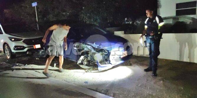 Diadomingo madruga a drenta informe di un accidente na Palm Beach banda di Del Rey Appartments, mesora a dirigi un patruya na e sitio. Na yegada di e patruya a bin compronde cu aki ta trata di un accidente unda cu e chauffeur di un Kia Sorento a baha caminda dal 2 auto staciona y un cura di cas despues di e impactonan aki e Kia Sorente a bay termina kibra den unda e chauffeur a baha y core bay na pia den e scuridad. Afortunadamente ningun hende a resulta herida pero hopi daño y gasto a keda atras.