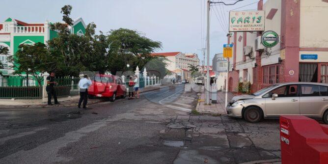 Diabierna mainta a drenta informe di un accidente na e crusada Oranjestraat cu Wilheminastraat, mesora un patruya a yega y a bin compronde cu e chauffeur di e Daihatsu Terios biniendo di zuid den Oranjestraat a bira bay pabao sin a duna e Nissan Tiida cu ta bin di nort preferencia pa sigi stret pa bay zuid y nan a dal den otro. Afortunadamente ningun hende a resulta herida.