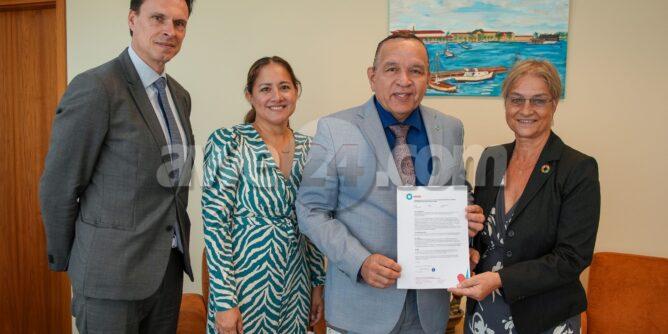 ORANJESTAD: Minister di Enseñansa y Deporte Endy Croes a reuni cu profesor di Universidad di Utrecht dr. Mirko Noordegraaf hunto cu directiva di Universidad di Aruba Sra. Sue-Ann Lee y Sra. Mieke Droog. Diaranson ultimo durante e reunion, a duna un avance di e proyectonan di Universidad di Aruba, entre otro, a entrega Minister Endy Croes e conseho positivo di NVAO (Nederlands Vlaamse Accreditatie Organisatie) di e Opleiding Bachelor Organization Governance Management (OGM). Un otro topico cu a trata durante e reunion ta e programa di Master den Governance and Leadership, cual ta un estudio di dos (2) aña. E estudio aki ta conta cu 23 empleado di diferente organisacion di Aruba. Tambe, a duna un avance riba e Functiehuis. Nan ta repasando tur structura di Universidad di Aruba y acopl’e cu e structura di salario. Tin diferente compania profesional ta dirigiendo Universidad di Aruba riba e parti aki. Ta premira cu lo tin cu rapport di esaki prome cu final di e aña 2024. Fuera di esaki, a dialoga brevemente di e gobernacion di Universidad di Aruba. Por ultimo, a duna un avance di Maria Convent, cual ta un proyecto grandi cu Gobierno di Aruba hunto cu UNESCO y Leuven a inverti 5.5 miyon florin. E proyecto aki lo ta compelamente finalisa den e luna di mei di e aña aki. Pa finalisa, Minister Endy Croes ta indica cu e tabata un bon reunion, unda a trata diferente punto importante en cuadro cu Universidad di Aruba.