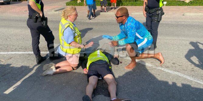 Diamars atardi a drenta informe di un incidente cu hende herida y benta memey di caminda na malmok, mesora a dirigi tanto polis como ambulans na e sitio. Na yegada di e patruya a bin compronde cu aki ta trata di un turista crucero cu lo a bira malo coriendo un di e Segwaynan y a dal abao. Na yegada di e ambulans nan a haya e turista poco bruha y a atende y transporte pa un control mas extenso na hospital.