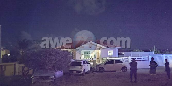 Diasabra madruga a drenta informe di un accidente na Macuarima, mesora a dirigi un patruya na e sitio. Na yegada di e patruya a bin compronde cu aki ta trata di un accidente unda e chauffeur di un Nissan Sentra blauw cla cu a perde control baha caminda bay dal un Toyota Yaris y un Kia staciona manda e Kia destrui un cura di cas. Djey ela core bandona e sitio na careda na pia lagando e auto atras. Polis a confisca e auto pa mas investigacion.
