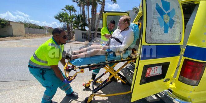 Diahuebs mainta a drenta informe di cu un hende lo a hoga na Boca Catalina, mesora a dirigi tanto polis como ambulans na e sitio. Na yegada di e patruya a bin compronde cu un turista di 80 aña debi na e olanan halto lo a guli hopi awa y a bira malo. E tabata sinta na e canto di lama. Na yegada di e ambulans nan a atende y a transporte pa hospital.