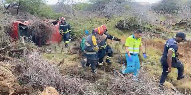 Diadomingo mainta a drenta informe di un accidente cu hende herida y pega den auto na Sasakiweg. Mesora a dirigi tanto polis, ambulans y brandweer na e sitio. Na yegada di e patruya a bin compronde cu chauffeur di un pick-up Colorado lo a slip riba caminda tiki muha perde control kentel bay den bay den mondi banda di caminda. Na yegada di brandweer nan a logra saca e chauffeur cu lo tabata pega den e pick-up y a yud’e cana pa bai na e ambulans. Na yegada di e ambulans nan a atende cu e victima y a transporte pa hospital. Polis a tuma datos di e accidente aki.