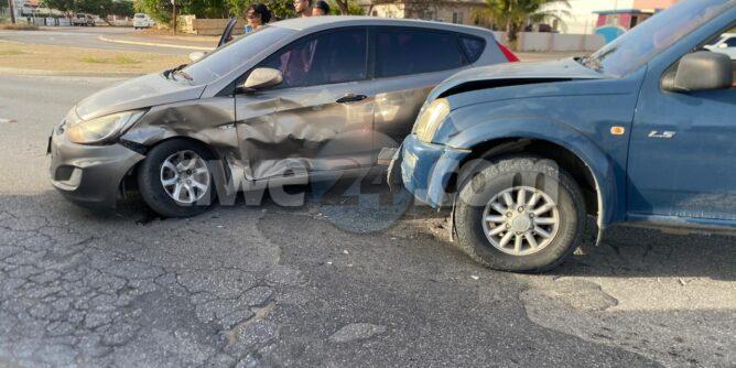 Diahuebs atardi a drenta informe di un accidente cu hende herida banda di Pacifico Paradera, mesora a dirigi tanto polis como ambulans na e sitio. Na yegada di e patruya a bin compronde cu aki ta trata di un accidente pa falta di preferencia unda e chauffeur di e hatchback no a duna preferencia na e pickup biniendo di pariba y a dal den dje. Debi na e impacto e dama na stuur di e auto a resulta herida y e mucha pasahero den e pickup. Na yegada di e ambulans nan a atende nan na e sitio mes.