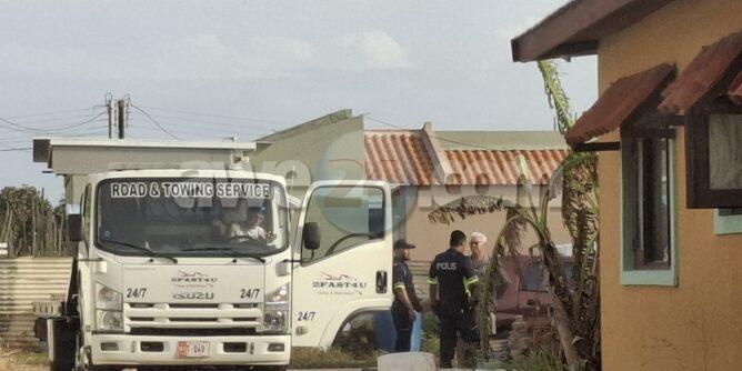 Diabierna atardi despues di e accidente na Macuarima e chauffeur cu a agredi e dama despues di e accidente a bandona e sitio y a bay sconde e auto patras di su cas, Polis a nota cu e auto ta scondi patras y a pita pa e chauffeur sali pero e no kier a sali. Un persona di edad a sali pafo y polis a bis’e cu si e chauffeur no sali e ta confisca e auto unda e tin’e scondi. Como cu no por a haci otro na final polis a laga takelwagen saca e auto y bay cu e auto warda di polis na Santa Cruz pa asina esun responsabel tras stuur para pa su actonan.