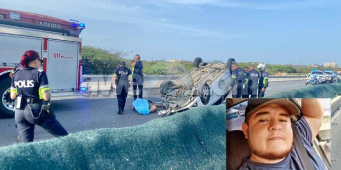 Diadomingo atardi pa mas o menos 4:55 central di polis ta wordo notifica di un accidente ariba Watty Vos Blvd. ,retonde Ponton pa direcion Bushiri. Na yegada di e patruya a topa cu un auto Chevrolet Spark color blanco numera A-40313 y na unda e chauffeur no tabata duna señal di bida. Ambulance a presenta na e sitio na unda a purba yuda e chauffeur masculino pero no por a haci nada mas pa e persona. Dr Voskuil , dr forensico, ta constata morto di Jefferson Carrera Garcia naci 20 april 1993 (31 aña) na Venezuela.