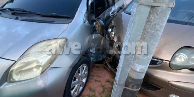 Diadomingo atardi a drenta informe di un accidente na Avenida Milio Croes, mesora a dirigi un patruya na e sitio. Na yegada di e patruya a bin compronde cu aki ta trata di un accidente unda un Toyota Vitz a bay bira na man robes net ora un Byd F0 a bay pas’e y door di e impacto aki e Vitz a pone e F0 bay dal riba un palo di lus. Afortunadamente ningun hende a resulta herida pero pa un rato ambos chauffeur a bandona e sitio. Despues si un rato ora a tende cu polis lo takel e autonan e chauffeurnan a aparece.