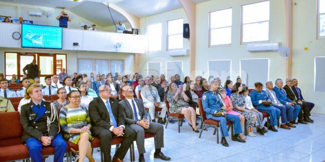 MACUARIMA, ARUBA: 16 augustus 2024 Cuerpo Policial Aruba a celebra su 38 aniversario. Awe nos a celebra e gran dia aki cu un Santo Sacrificio di misa na Iglesia Alianza Evangelica na Oranjestad. Den presencia di Minister di Husticia y Asuntonan Social sr. Rocco Tjon, Presidente di Parlamento Sr. Edgar Vrolijk, Procurador Generaal Amalin Flanegin, Hefe di Koninklijke Marechaussee, Hefe di Mareniers Kazerne Savaneta, altocomisario di polis drs. Ramon Arnhem, Staff, personal administrativo, agentenan policial conhuntamenta cu nos pensioenadonan a celebra e dia importante aki.