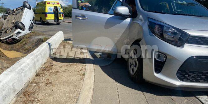 Dialuna atardi a drenta informe di un accidente unda un auto a bolter cu hende herida na Pos Abao. Mesora a dirigi tanto polis como ambulans na e sitio. Na yegada di e patruya a bin compronde cu un KIA Picanto shinishi lo a sali dilanti un Chevrolet Spark blanco cu tabata biniendo di direccion Hato. E Auto blanco lo a purba para pero no a logra y a dal den auto shinishi. E impacto tabata fuerte y a pone cu e auto blanco a bolter y cay den e greppel na banda. Departamento di brandweer tambe tabata na e sitio pa asistencia. Na yegada di e ambulans nan a atende cu e victima y a transporte pa hospital. Polis a tuma datos di a accidente aki.