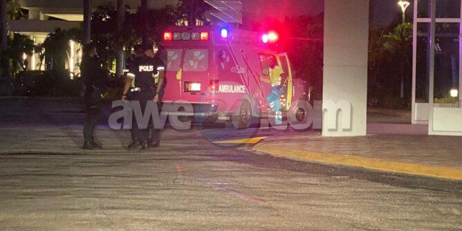 Diahuebs madruga a drenta informe di cu tin un homber cu a sali for di casino y a cuminsa kibra cosnan den e lobby di e hotel, mesora a dirigi un patruya na e sitio. Na yegada di e patruya a bin compronde cu aki lo ta trata di un persona cu lo ta bao influencia di un of otro substancia cu a destrui cosnan na e hotel. Ora polis a bay atende cun’e esaki a resisti su detencion y a cay kap su cabes pa cual motibo a pidi presencia di ambulans na e hotel. Na yegada di e ambulans nan a atende e detenido y a transporte pa hospital escolta pa polis.