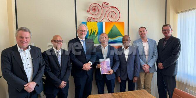 Oranjestad – Diabierna dia 18 di october 2024 Vice-Presidente di Raad van State van het Koninkrijk sr. mr. Thom de Graaf, a entrega nan conseho den cuadro di e 70 aña di existencia di Statuut di Reino Hulandes na Presidente di Raad van Advies sr. David Kock.