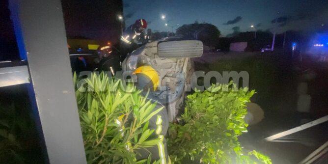 Diadomingo atardi laat a drenta informe di un accidente cu hende herida unda un auto a perde control y a bay cay y causa daño na otro 4 autonan staciona den cura di Ritz Carlton, mesora a dirigi tanto polis, ambulans como tambe e equipo di rescate di bombero na e sitio. Na yegada di e patruya a bin compronde cu aki ta trata di e Mitsubishi Galant A67760 cual a perde control y a bay dal e cura di Ritz Carlton kibra y a destrui 4 otro autonan mas. Entre nan un Hyundai Accent A50753, un MG V5674, Kia V166 y tambe e Jeep A68239. Tur e autonan aki a ricibi daño. Den e auto mes tabata tin e dama chauffeur hunto cu 2 mucha mas. Na yegada di e ambulansnan nan a atende e victimanan mientras bombero a corta e wayanan di bateria pa asina evita e auto pega na candela.